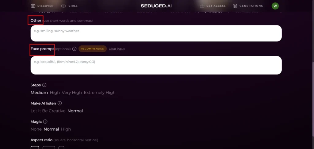 Advanced Settings: IceGirls.AI offers advanced settings that allow you to adjust image aspect ratio, details, and quality for a more tailored experience.